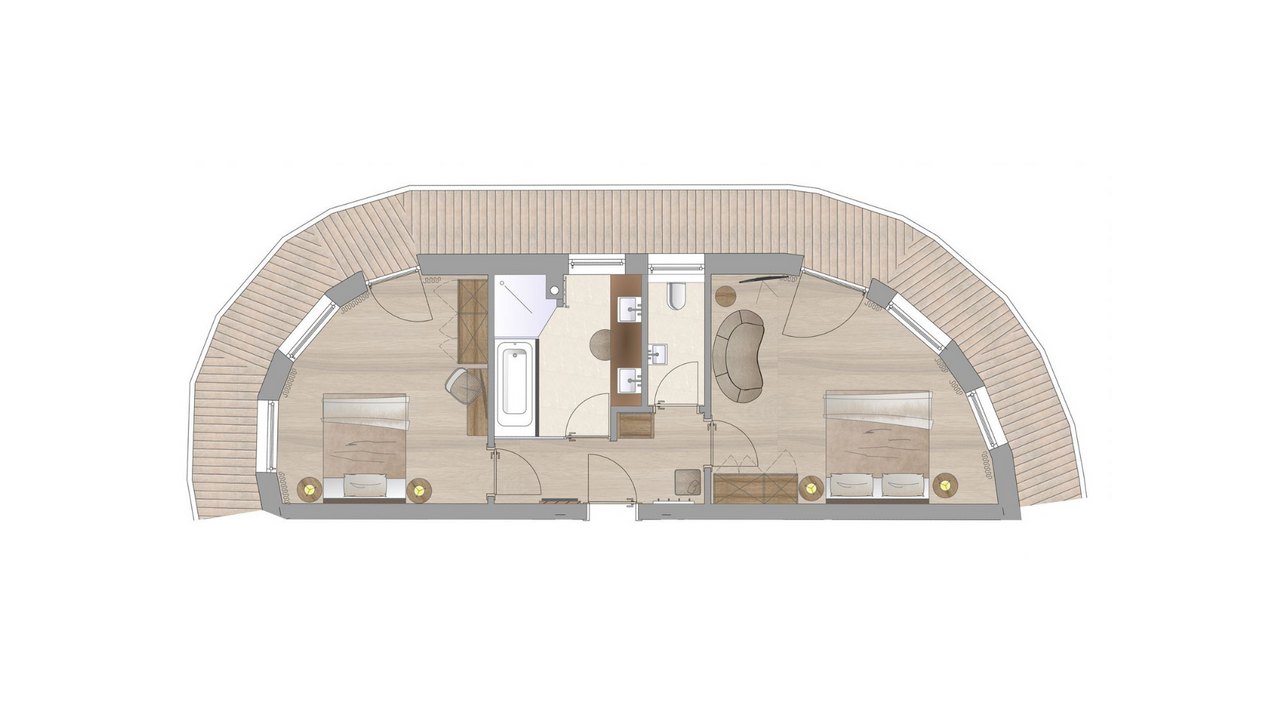 ca. 50 m², geschmackvolle Suite mit 2 Schlafzimmern, Parkettboden, Klimaanlage, Badezimmer mit Badewanne und frei begehbarer Regendusche, übergroße Panoramafenster, Balkon mit herrlichem Panoramablick zum Wilden KaiserGrundriss ansehen